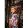 Clothing: Leonique wears a very pretty outfit, a floral fabric suspender skirt with two large checked pockets, combined with a checked blouse, as in the photo, in the Zwergnase style. Beige lace-up leather ankle boots complete the look.